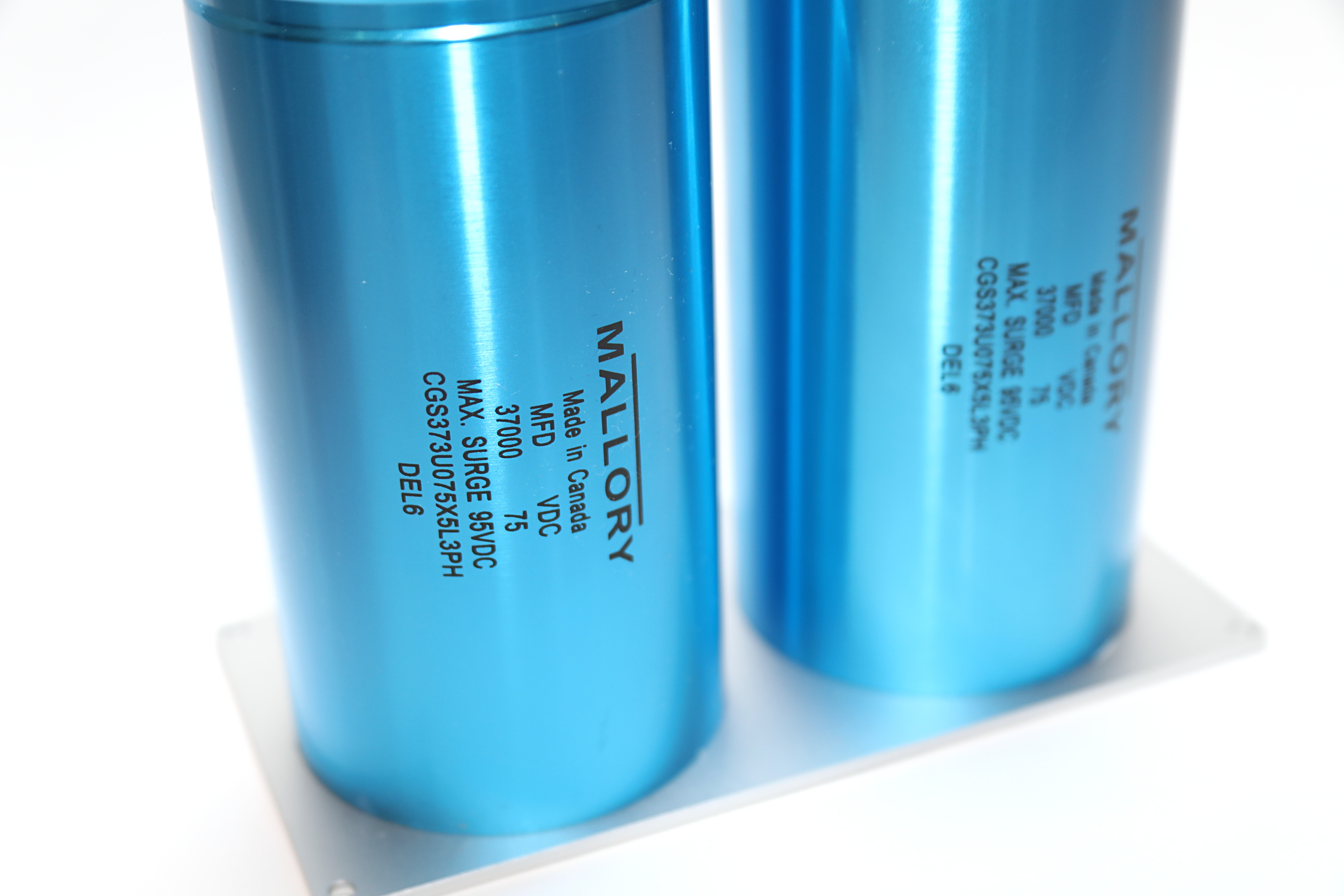 We also include a black anodyzed aluminum base to which the capacitors are bolted with 4 bolts.