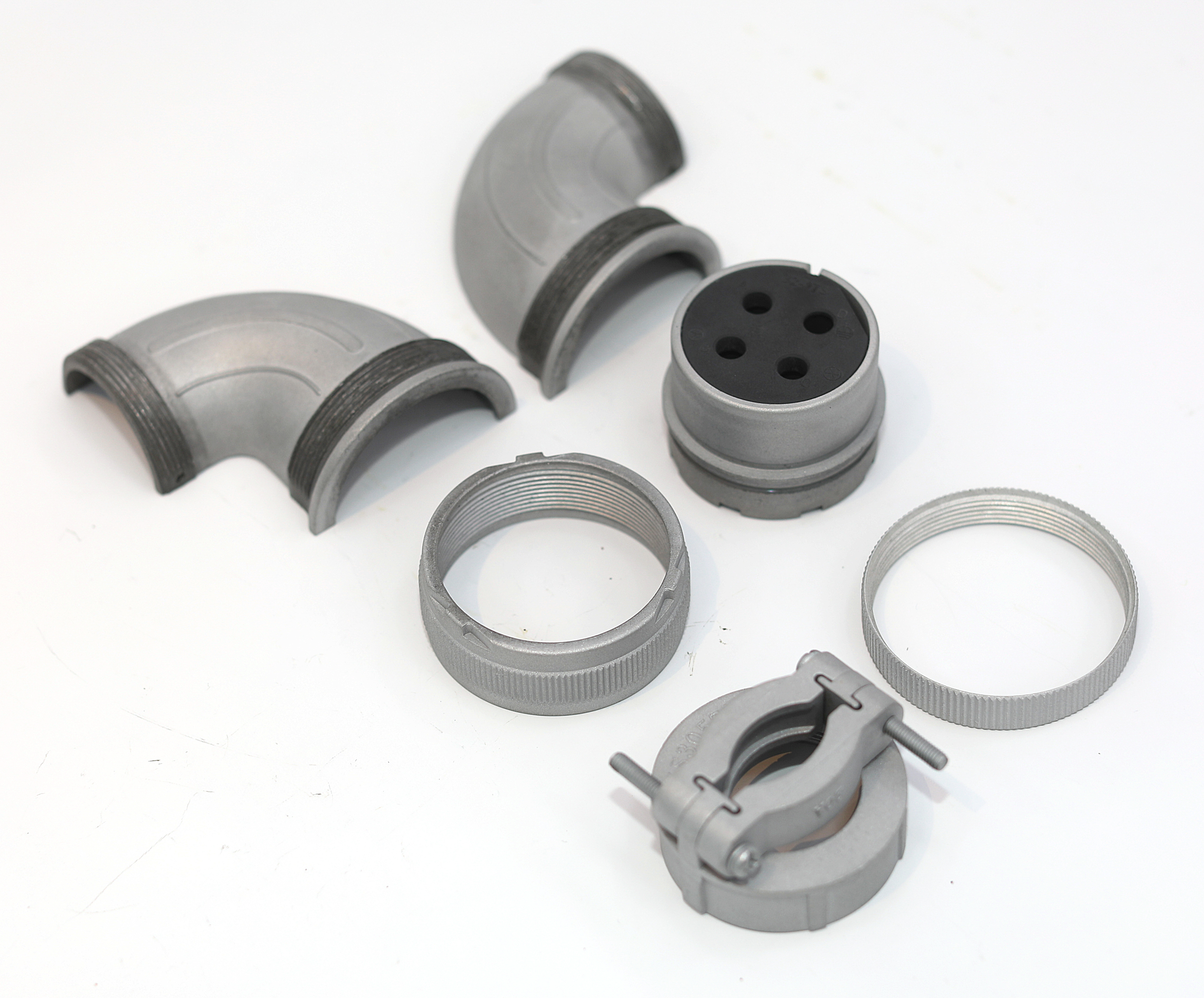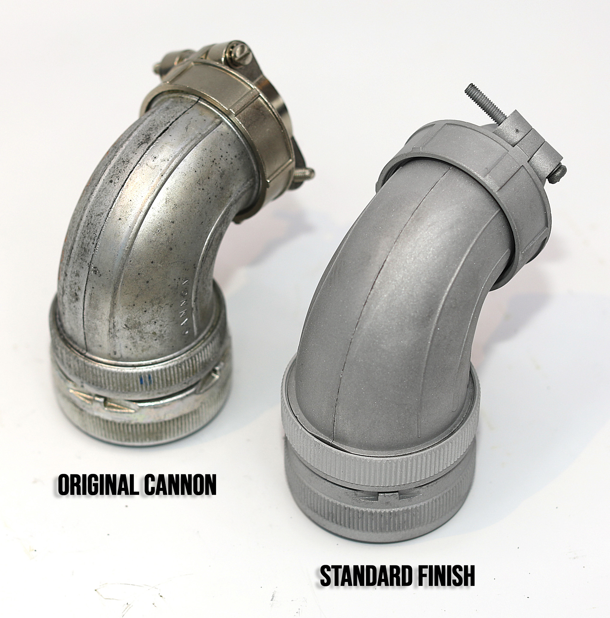 The larger 3108B32 elbows are “Cannon” brand military connectors with a 90 degree shell.