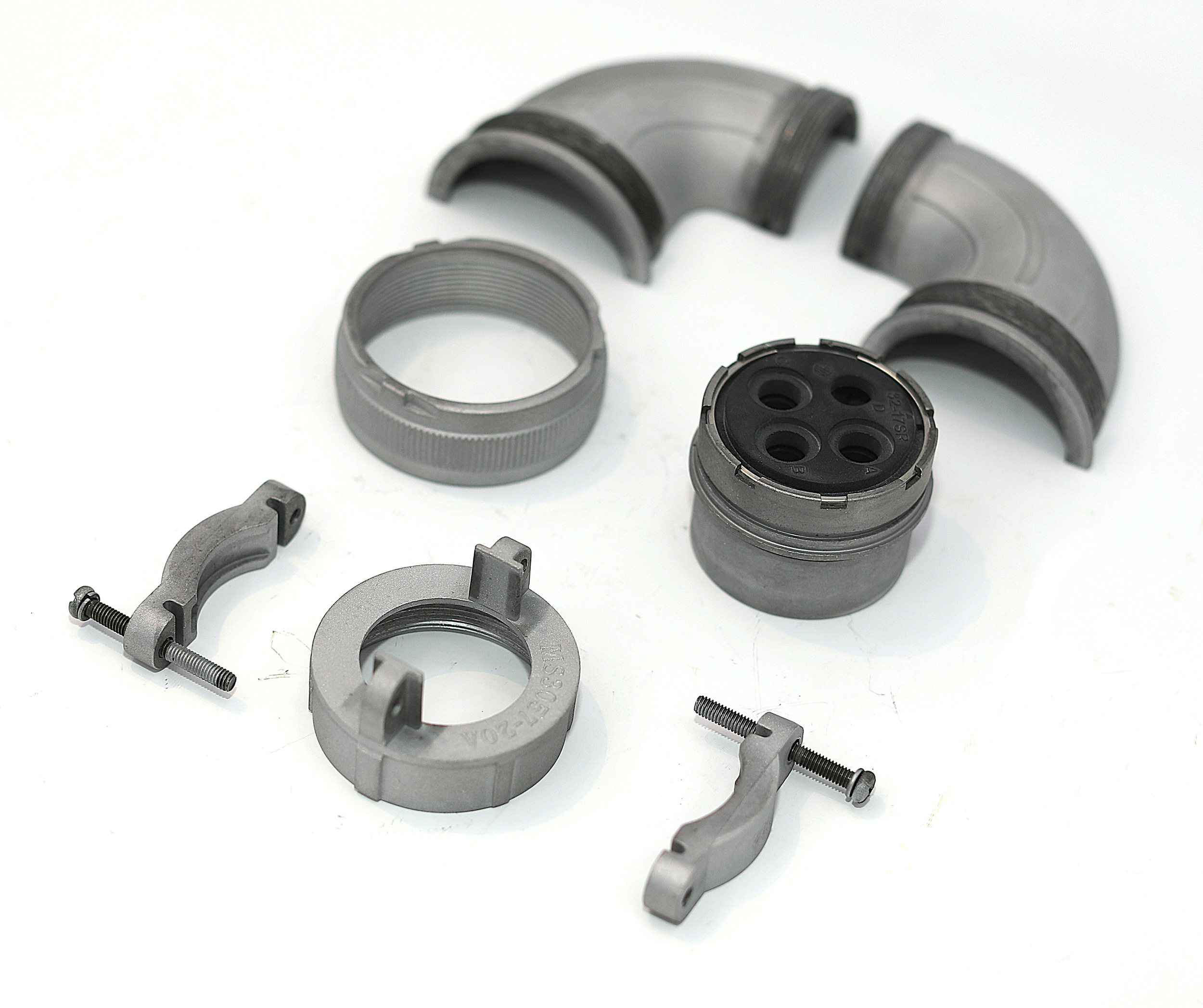 The larger 3108B32 elbows are “Cannon” brand military connectors with a 90 degree shell.