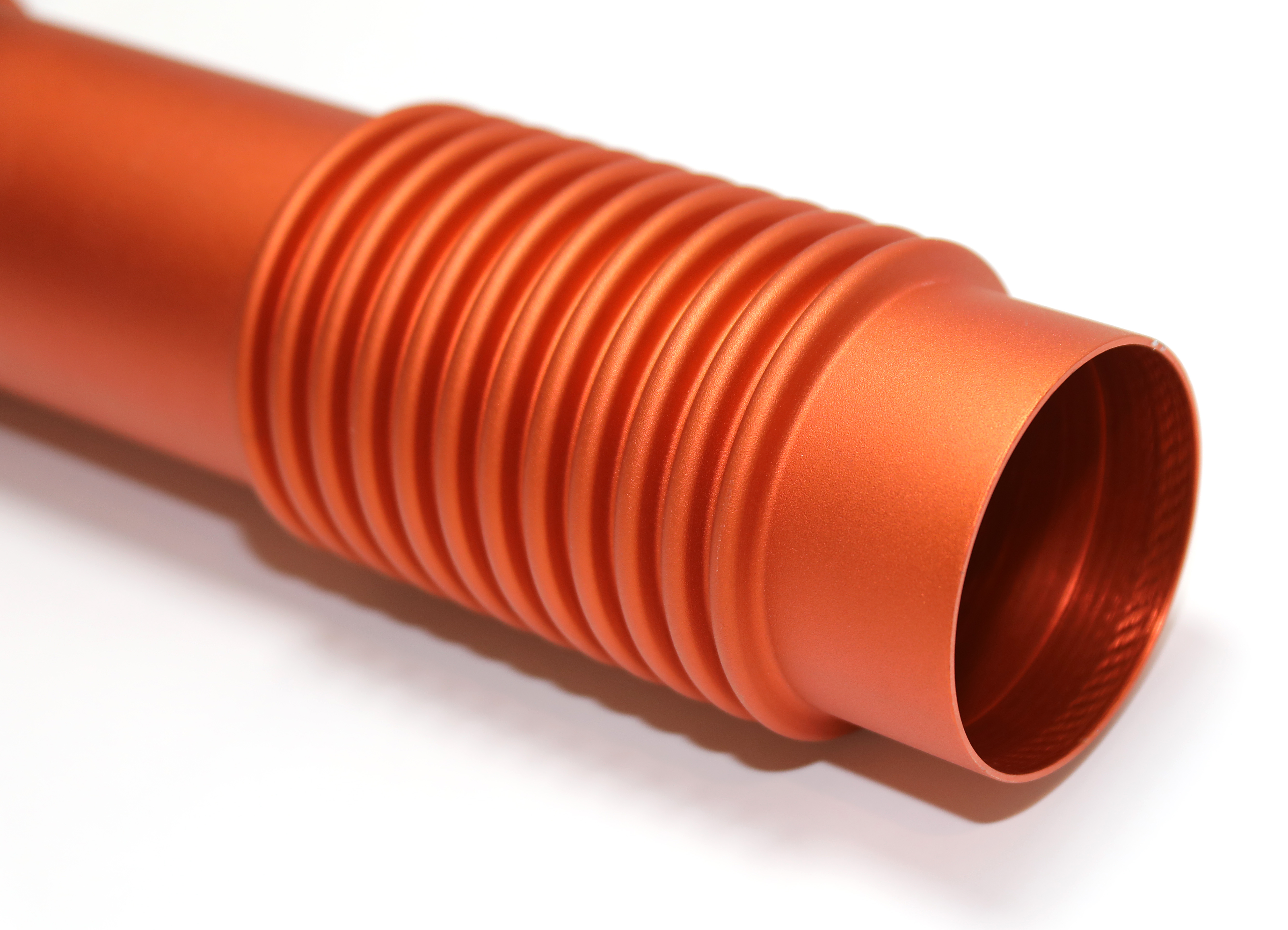 To create this Orange pipe we 3D scanned an original Sikorsky Arrowhead 711374-1 hose and CNC’d it from an aluminum tube. After that it was anodysed orange which allows you to use it directly or paint it with the slightly darker color used in the BTTF time machine.
